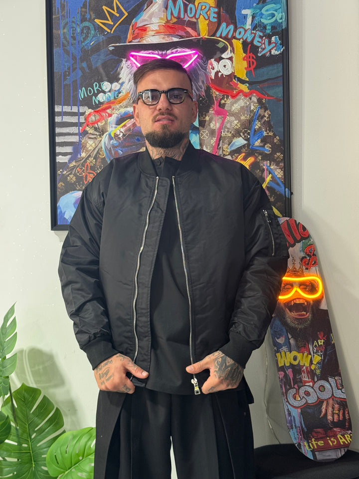 Il modello è alto 176 cm e pesa 76 Kg. Indossa un L.