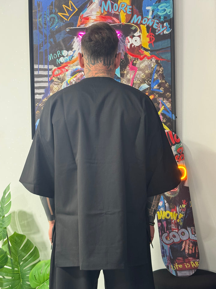 Il modello è alto 176 cm, pesa 76 kg, e indossa una L